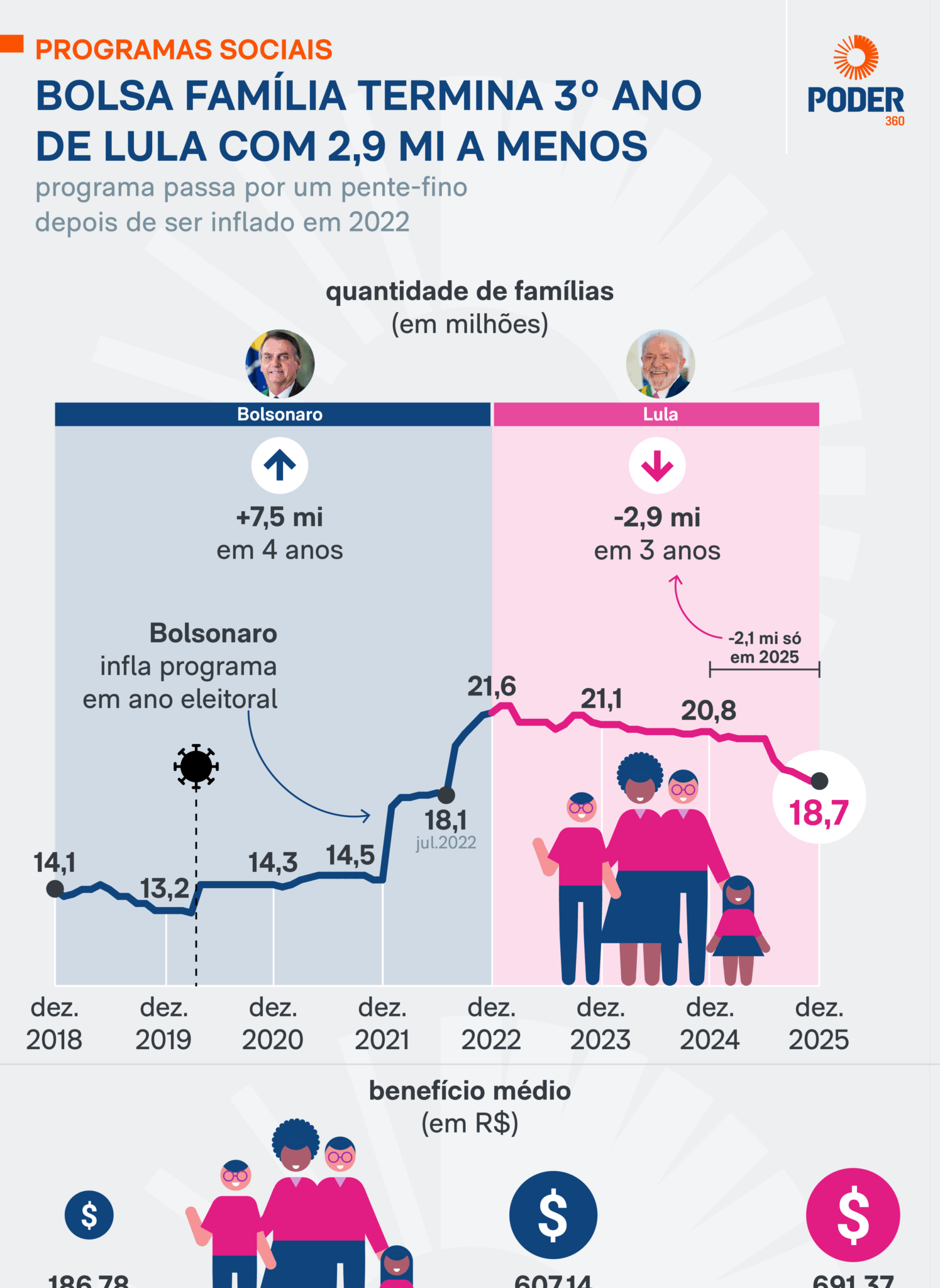 Desde a posse de Luiz Inácio Lula da Silva (PT), em janeiro de 2023, o saldo acumulado é de 2,9 milhões de famílias a menos no programa. O governo afirma que parte dos desligamentos ocorreu porque beneficiários tiveram aumento de renda, mas também cita a identificação de fraudes.
