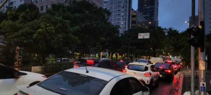 A combinação de chuva ao longo do dia e a paralisação de motoristas e cobradores de ônibus, que levou à suspensão do rodízio municipal de veículos, provocou o aumento do tráfego. O recorde anterior de 2025 era de 1.335 km, medido às 19h de 8 de agosto.